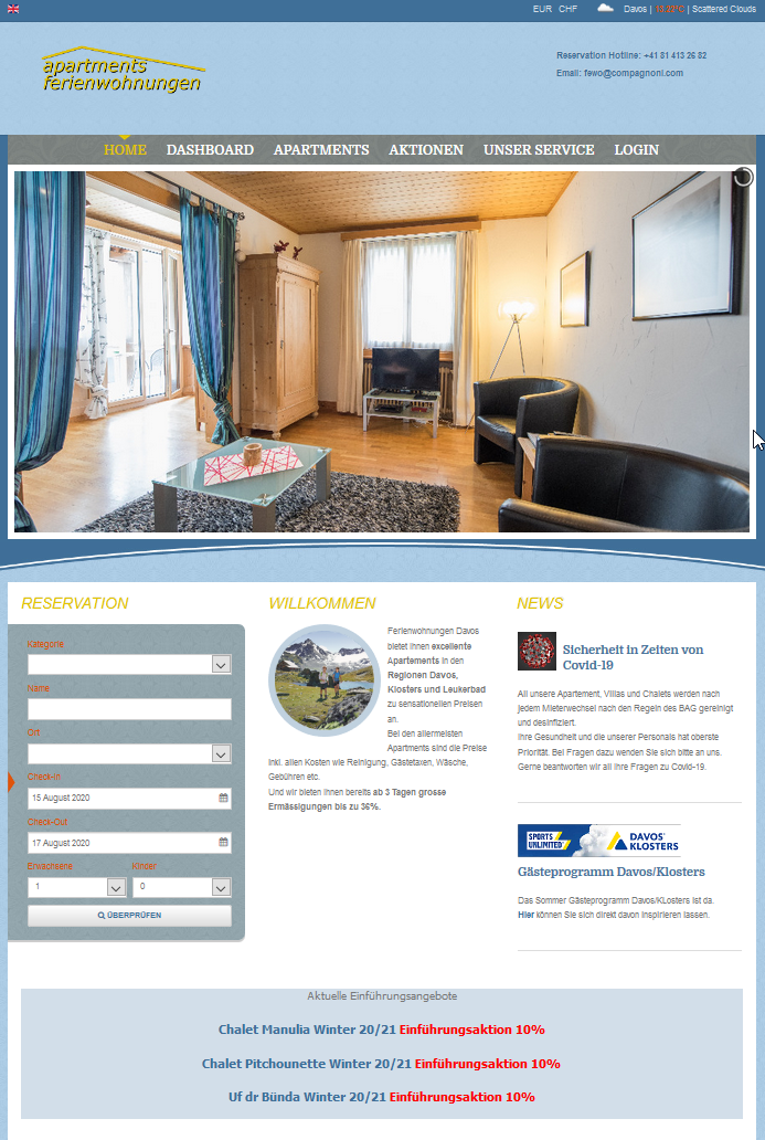 Online Buchungsportal von Compagnoni Ferienwohnungen GmbHKonzept, Design und Umsetzung 2010